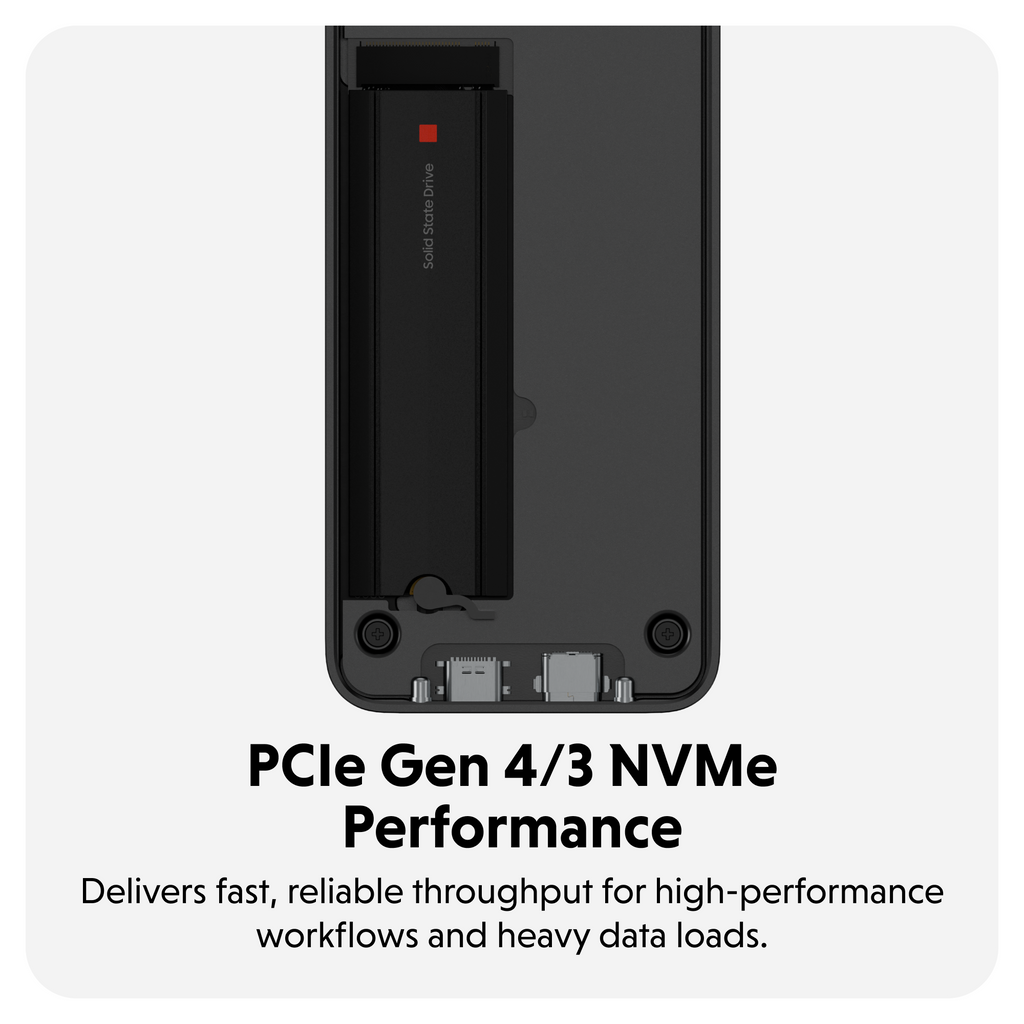 Delivers full-speed PCIe Gen 4 and Gen 3 NVMe performance over USB4, giving you the fastest possible transfer rates for professional workflows and large file handling.